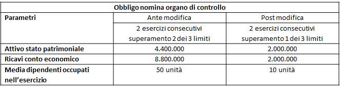 In sostanza, la novella normativa ha modificato la terza casistica, ossia quella di cui alla lettera c), atteso che la versione antecedente della disposizione imponeva l’obbligo di nomina dell’organo di controllo o del revisore in caso di superamento per due esercizi consecutivi di due dei tre limiti indicati nel primo comma dell’articolo 2435-bis cod. civ..