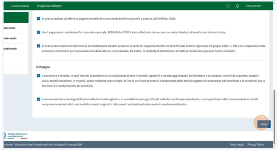 La sezione ‘’Dichiarazioni’’, saranno presenti una serie di check, tutti obbligatori: