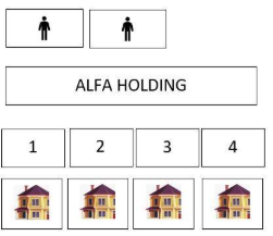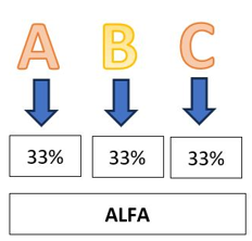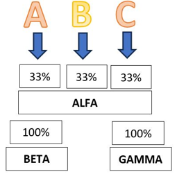 E veniamo alla soluzione della scissione mediante scorporo. La successiva Figura n. 2 rappresenta la situazione di partenza con i 3 soci della società Alfa, che intendono dividersi in quanto vogliono proseguire autonomamente le proprie strade.