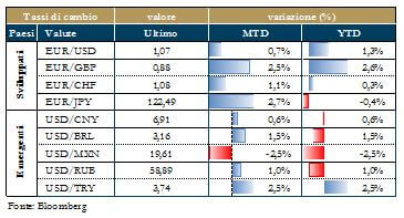 Nel meeting di questa settimana la BCE ha lasciato invariati i livelli del corridoio dei tassi di interesse, confermando sia il proprio commitment a mantenerli bassi per un periodo prolungato di tempo (mantenendo così invariata la forward guidance) sia le modalità del piano di acquisti (ad un ritmo mensile di 80 miliardi di euro sino alla fine di questo mese e di 60 miliardi di euro sino alla fine di dicembre 2017). I rischi al ribasso per la crescita sono diminuiti, ma la BCE ha ribadito di non voler prendere in considerazione la politica di normalizzazione fino a quando non vedrà un trend duraturo di crescita nell’inflazione core e soprattutto nei salari. Proprio nei salari il Presidente Draghi vede la variabile chiave, capace di trasformare la crescita economica in crescita dei prezzi. Riconoscendo il miglioramento delle prospettive di crescita e inflazione all’interno dell’Area Euro, la BCE ha rivisto significativamente al rialzo le proiezioni dell’inflazione attesa per l’anno in corso (a 1.7% da 1.3%) solo marginalmente quelle per il prossimo (a 1.6% da 1.5%), lasciando invariate quelle per il 2019 (a 1.7%). In relazione alle stime di crescita, la BCE ha marginalmente rivisto al rialzo la variazione del PIL, a 1.8% da 1.7% per l’anno in corso, a 1.7% da 1.6% per il 2018, lasciando invariata a 1.6% la stima per il 2019. Queste previsione dello staff della BCE andrebbero in ogni caso lette come condizionali all’attuale politica monetaria in quanto si basano sulla piena e completa applicazione delle misure espansive attualmente in essere.