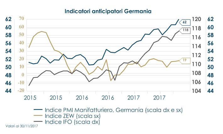 In Germania l’indice di fiducia IFO per le imprese relativo al mese di dicembre ha registrato una marginale correzione da 117.6 a 117.2 portandosi al di sotto delle aspettative (117.5). Nel complesso il sondaggio rimane in prossimità dei massimi storici per la serie e appare coerente con un’espansione robusta. Il dettaglio delle componenti registra un rallentamento inatteso per la valutazione delle aspettative a 6 mesi, passate da 111.0 a 109.5, mentre il dato relativo alla situazione corrente accelera da 124.5 a 125.4. Le aspettative a 6 mesi, sono passate da 111.0 a 109.5, mentre il dato relativo alla situazione corrente accelera da 124.5 a 125.4.Nelle elezioni in Catalogna i tre partiti separatisti si sono aggiudicati 70 seggi complessivamente, due in più dei 68 necessari per ottenere la maggioranza nell’assemblea di 135 posti. Tuttavia, da un lato il partito anti-indipendenza Ciudadanos ha raggiunto il più elevato numero di seggi (35) come partito singolo, dall’altro i partiti separatisti prima delle elezioni non hanno concordato un fronte comune e parte di loro esclude una spinta imminente per l’indipendenza. Invece, sembra più probabile che la Catalogna richiederà maggiore autonomia ed è stato riferito che il governo nazionale ha preso in considerazione l’idea di concedere alla Catalogna più libertà sulle questioni fiscali. Ciò potrebbe risultare in qualcosa di simile al sistema dei Paesi Baschi, dove il governo regionale imposta le proprie politiche fiscali e mantiene la maggior parte delle sue entrate, pur versando un trasferimento al Governo Centrale per pagare le politiche nazionali, come la difesa.