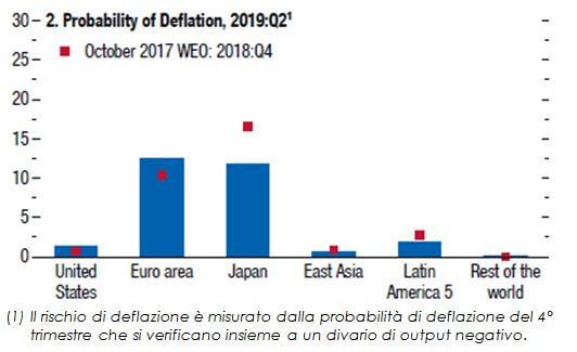 | Il rischio di recessione e deflazione è diminuito negli ultimi 4 trimestri, con eccezione per l’Area EuroRischi di recessione e deflazione stimati dal FMI (Fonte World Economic Outlook – aprile 2018) | |