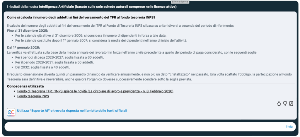 L’art. 1, comma 204, Legge di bilancio 2026, ha modificato strutturalmente la disciplina relativa al versamento del TFR al Fondo Tesoreria: dal 1° gennaio 2026 rientrano nell’obbligo, oltre alle aziende che nel primo anno di attività raggiungono la soglia di 50 addetti, tutte le aziende che raggiungono o superano la soglia dei 50 (60 nel 2026 e 2027; 40 dal 2032) dipendenti, indipendentemente dall’anno di costituzione e dall’organico storico.