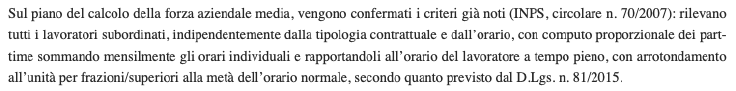 Essendo un provvedimento del 2007, la circolare INPS si riferisce alla soglia di 50 dipendenti e non tiene conto della novella normativa, che ha innalzato a 60 addetti la soglia per il 2026: ad ogni modo, le regole di computo sono corrette.