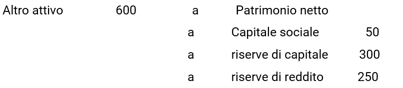 Lo storno di riserve per 300 (pari al plusvalore dell’immobile) viene ripristinato sul piano del quantum (ma non necessariamente sul piano qualitativo) dalla plusvalenza che si genera nell’ambito della rappresentata combinazione di scritture contabili. Sostanzialmente non si ha un utilizzo di una riserva rimpiazzata da una riserva con causa economica diversa, ma la stessa riserva solo soggetta ad una dinamica contabile che, nell’esempio rappresentato, prima la toglie dal patrimonio netto come riserva di capitale e poi la ripristina come riserva di reddito.