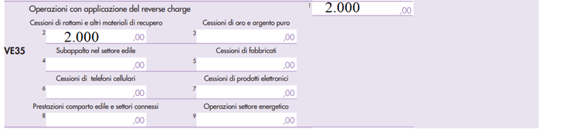 Il cedente dovrà compilare il rigo VE35 come segue.