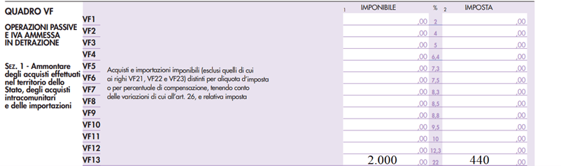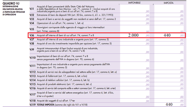 Il cessionario, invece, compila i quadri VF e VJ nel modo seguente.